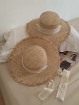 Wide Brim Lace Raffia Hat