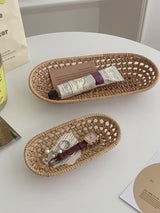 Experience the beauty of simple living with this hand-woven rattan basket bowl. Crafted from natural rattan, its oval shape and intricate weave bring a touch of organic warmth to any space, blending seamlessly with your refined aesthetic.